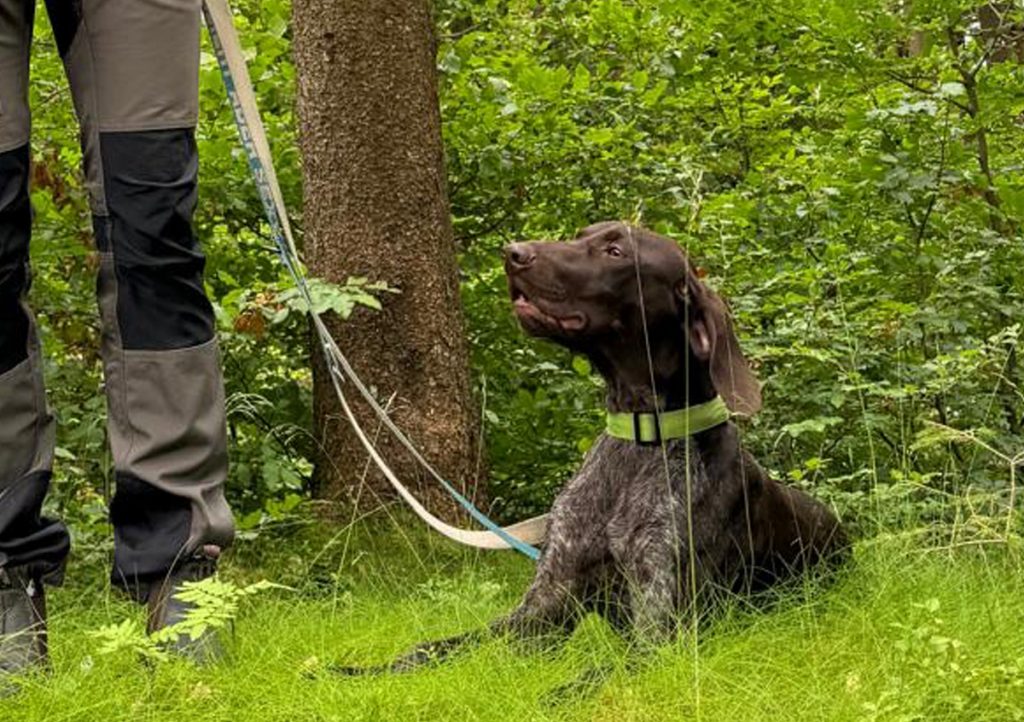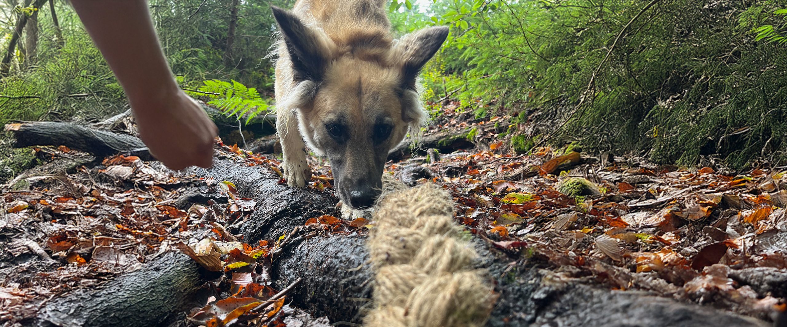 • Schleppenarbeit: Es wird etwas über den Boden gezogen und dein Hund muss exakt auf der Schleppe gehen und alle Bodenverwundungen finden.